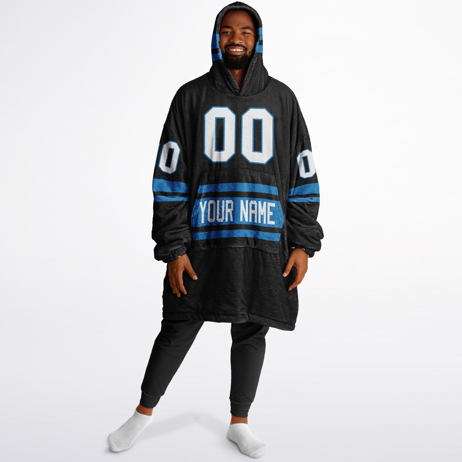 Show up for your team — and your comfort — with the Superfan Reversible Snug Hoodie. Inspired by classic home-and-away jersey colors, this double-sided design gives you two bold looks in one ultra-thick, blanket-weight hoodie. One side brings that home-field energy with eye-catching black and blue hues; flip it inside out for a fresh, lighter colorway that feels just as spirited. Add your personalized name and number to make it your own, and you’ve got the ultimate fan essential for game days, snow days, and every lazy day in between.