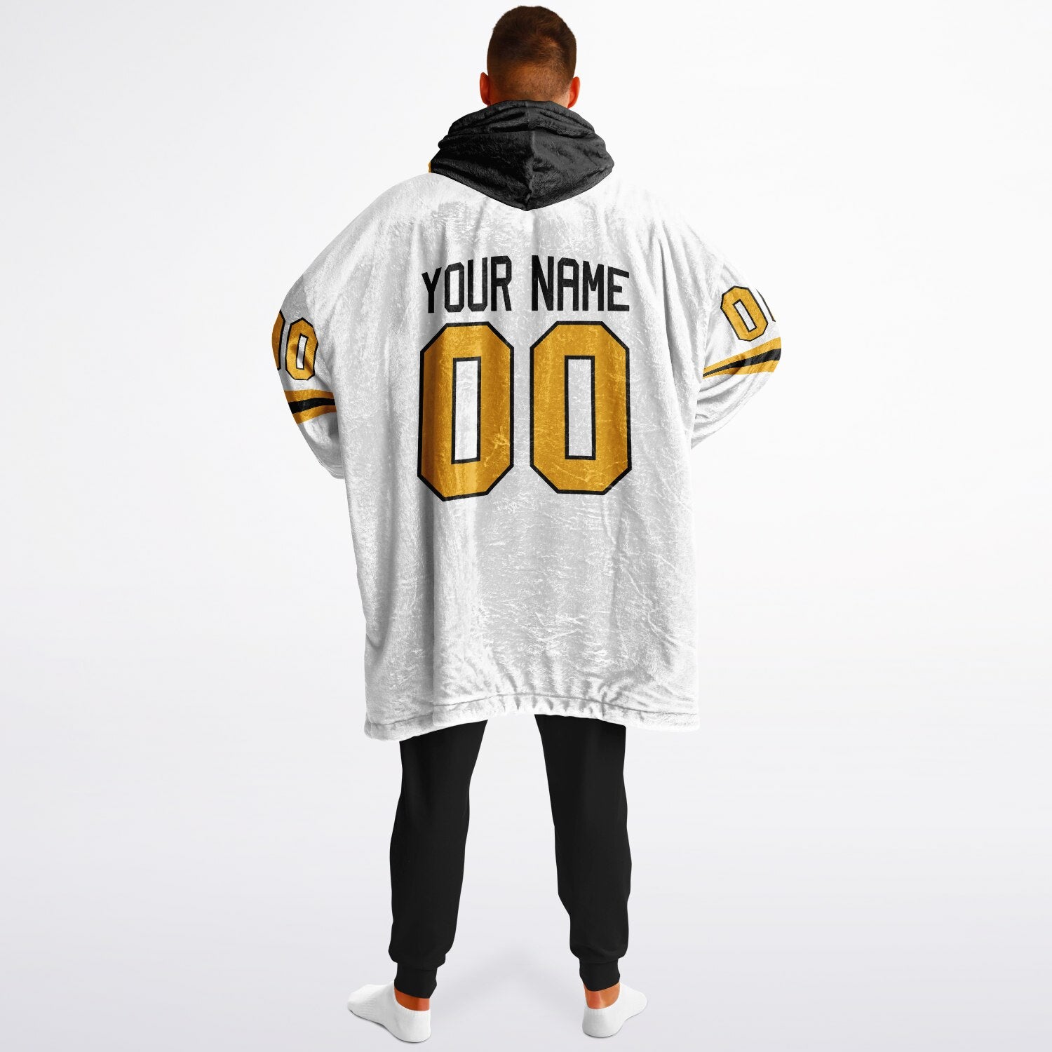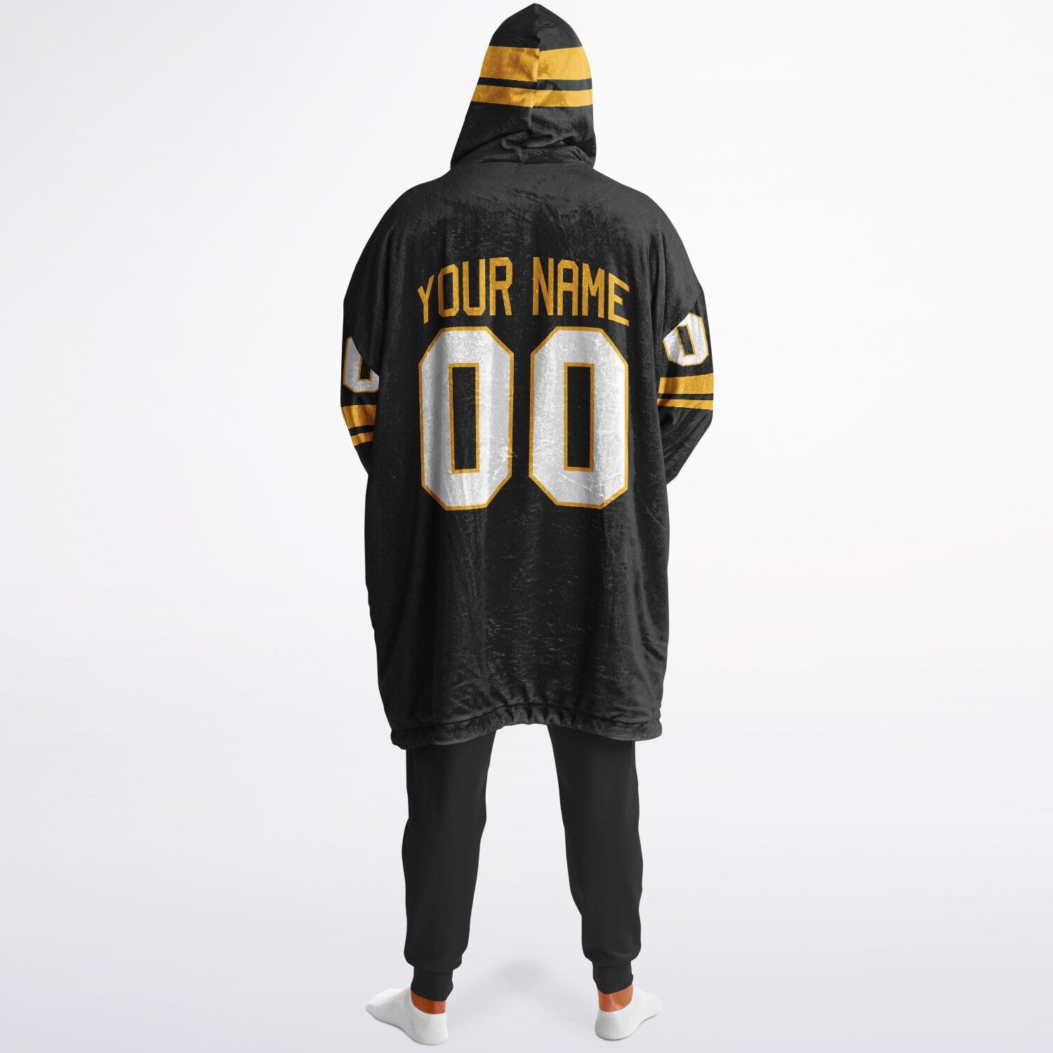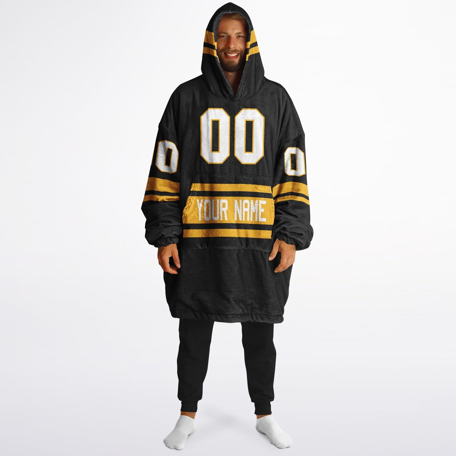 Show up for your team — and your comfort — with the Superfan Reversible Snug Hoodie. Inspired by classic home-and-away jersey colors, this double-sided design gives you two bold looks in one ultra-thick, blanket-weight hoodie. One side brings that home-field energy with eye-catching black and gold hues; flip it inside out for a fresh, lighter colorway that feels just as spirited. Add your personalized name and number to make it your own, and you’ve got the ultimate fan essential for game days, snow days, and every lazy day in between.
