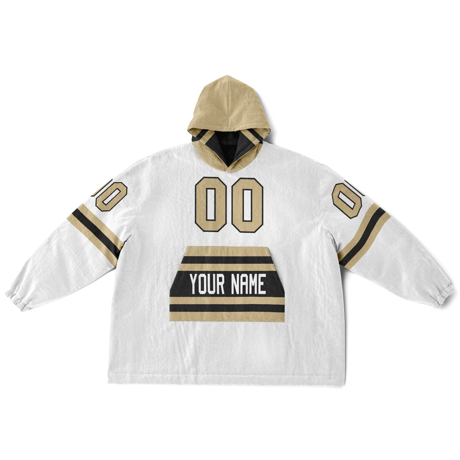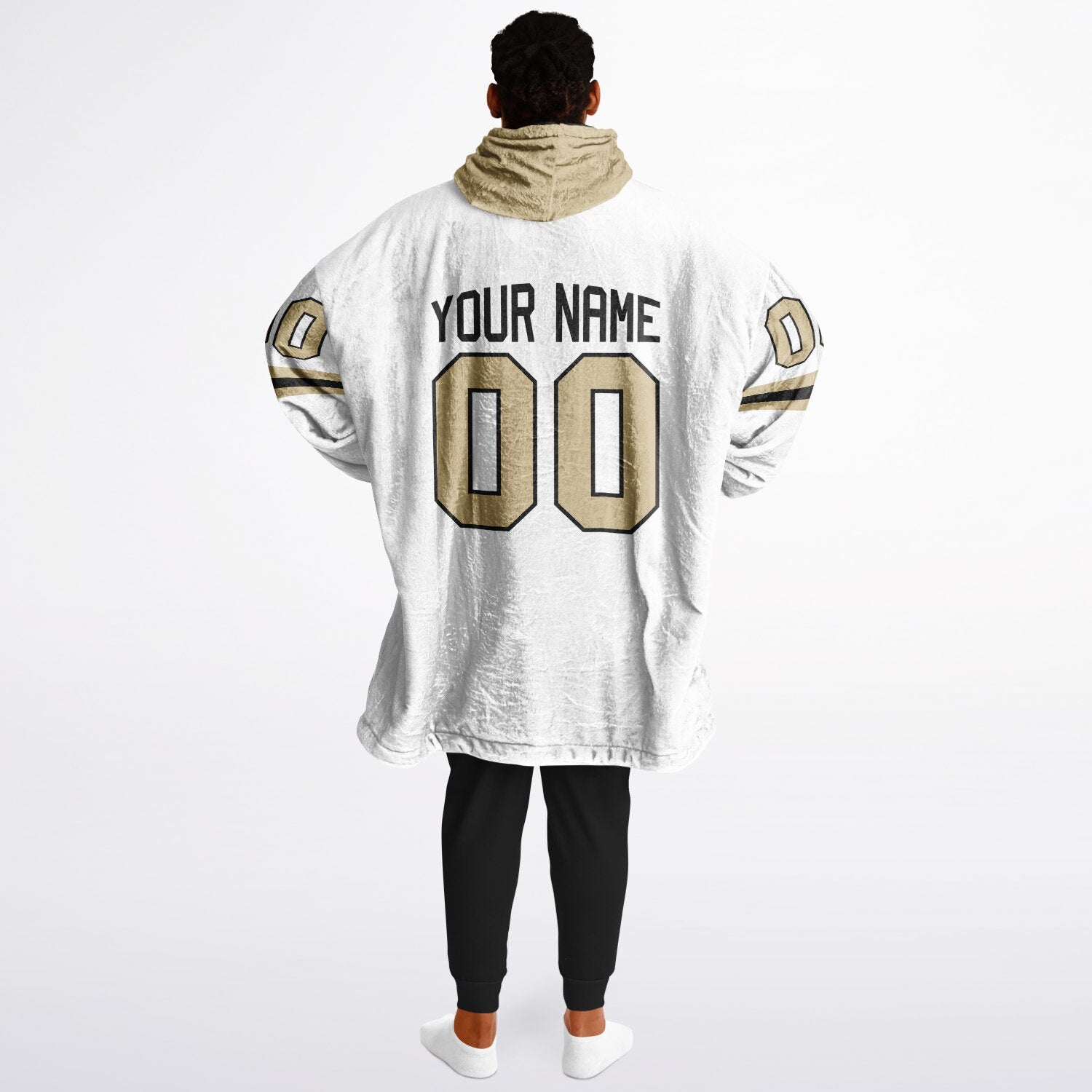 Show up for your team — and your comfort — with the Superfan Reversible Snug Hoodie. Inspired by classic home-and-away jersey colors, this double-sided design gives you two bold looks in one ultra-thick, blanket-weight hoodie. One side brings that home-field energy with eye-catching black and old gold hues; flip it inside out for a fresh, lighter colorway that feels just as spirited. Add your personalized name and number to make it your own, and you’ve got the ultimate fan essential for game days, snow days, and every lazy day in between.
