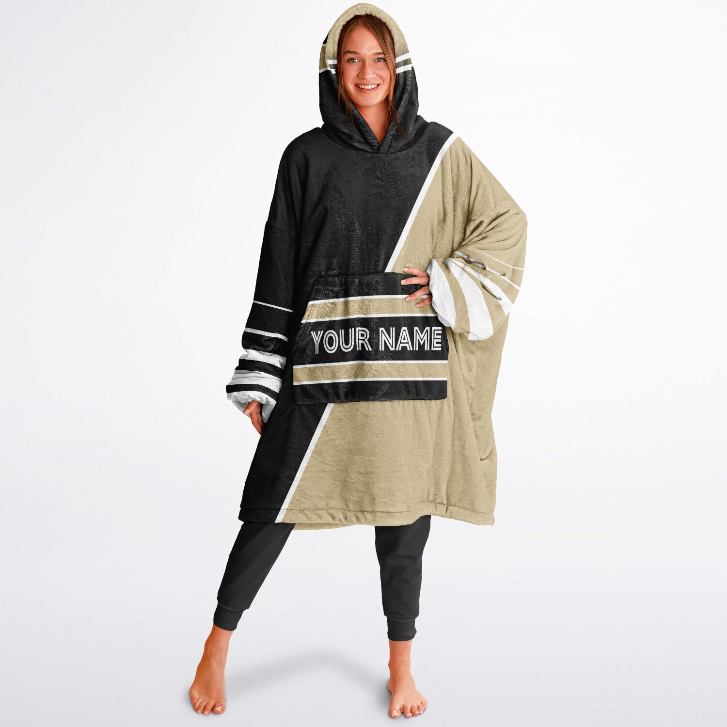 It’s a premium, wearable blanket hoodie — thick, cozy, and designed in team-inspired colors so you can stay warm and stylish all game long.