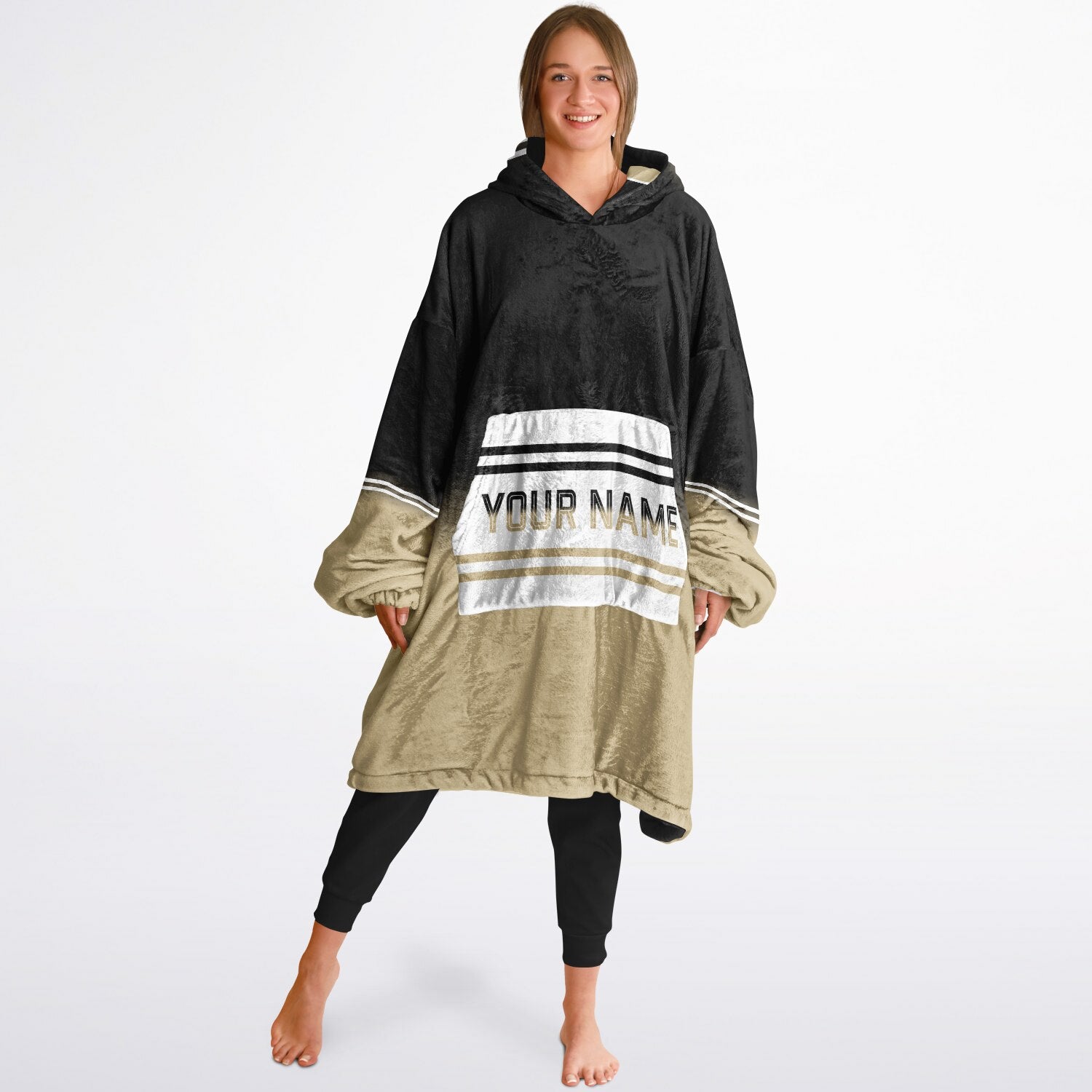 The Everyday Reversible 3-Color Snug Hoodie is where everyday comfort meets refined fan style. Designed with bold black and old gold color blocking and accented with crisp white, it’s a confident, elevated take on classic team-inspired color. Flip it inside out for a softer gradient fade that offers a more laid-back vibe. Personalize it with custom text to make it truly yours — a cozy, double-layered essential built for lounging, layering, or living in your favorite colors year-round.