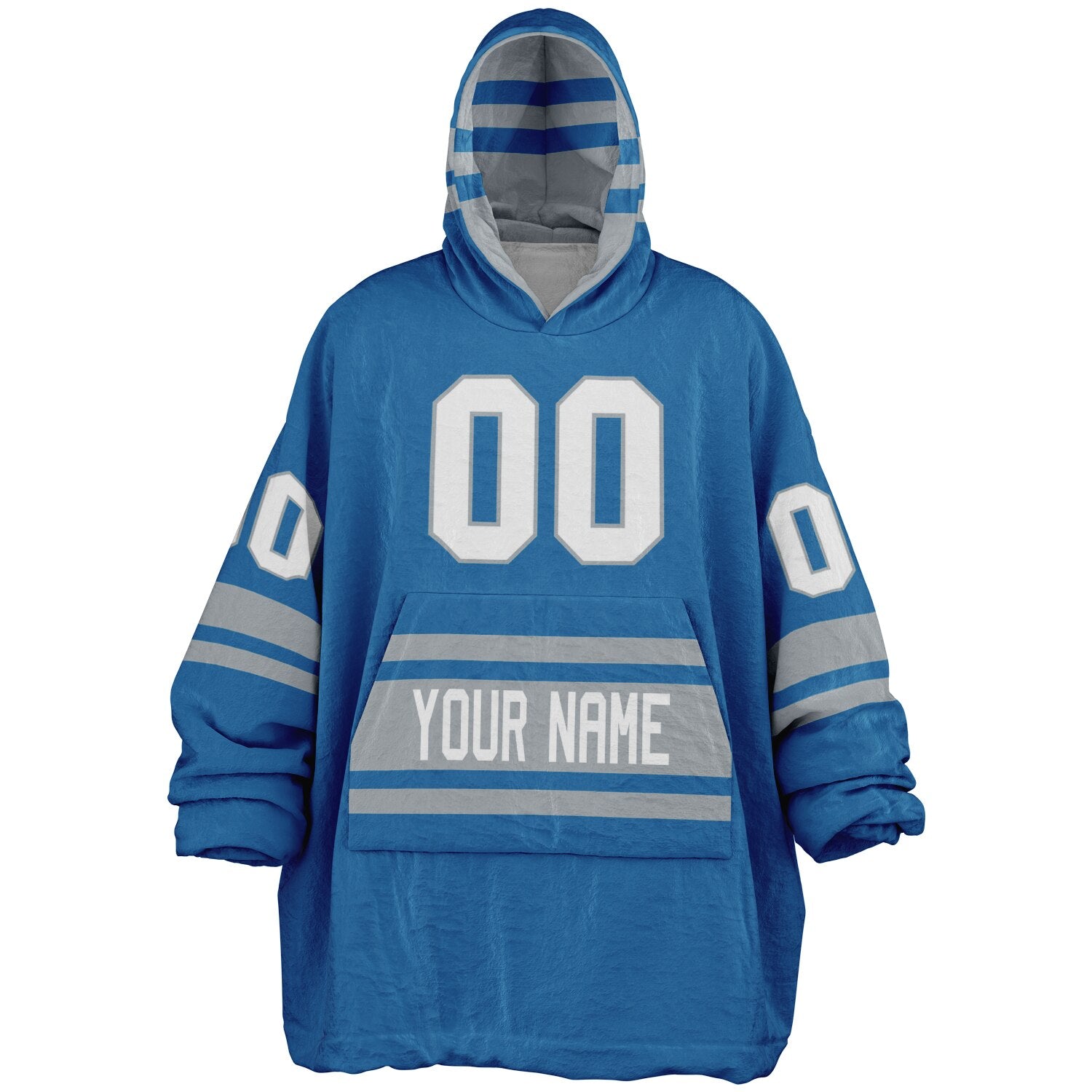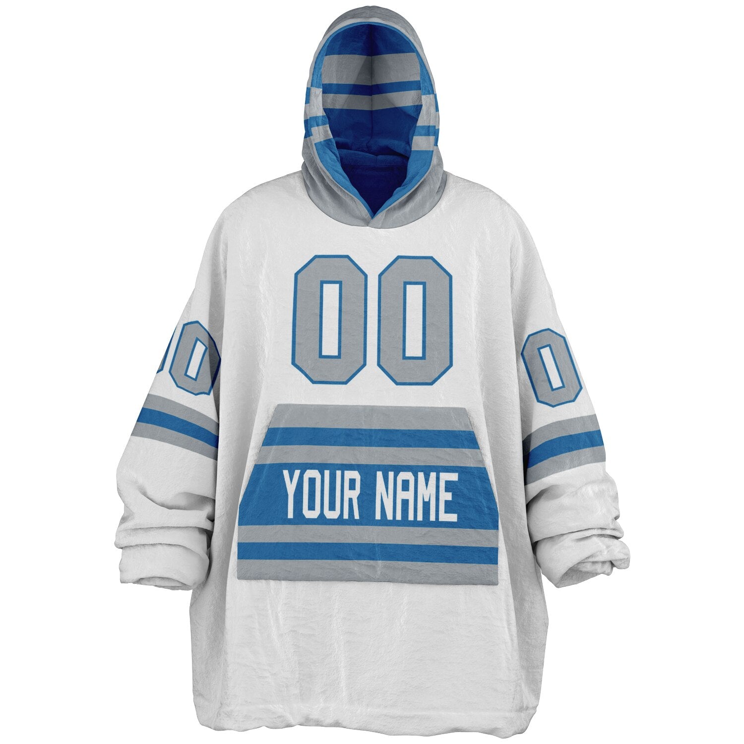Show up for your team — and your comfort — with the Superfan Reversible Snug Hoodie. Inspired by classic home-and-away jersey colors, this double-sided design gives you two bold looks in one ultra-thick, blanket-weight hoodie. One side brings that home-field energy with eye-catching blue and silver hues; flip it inside out for a fresh, lighter colorway that feels just as spirited. Add your personalized name and number to make it your own, and you’ve got the ultimate fan essential for game days, snow days, and every lazy day in between.