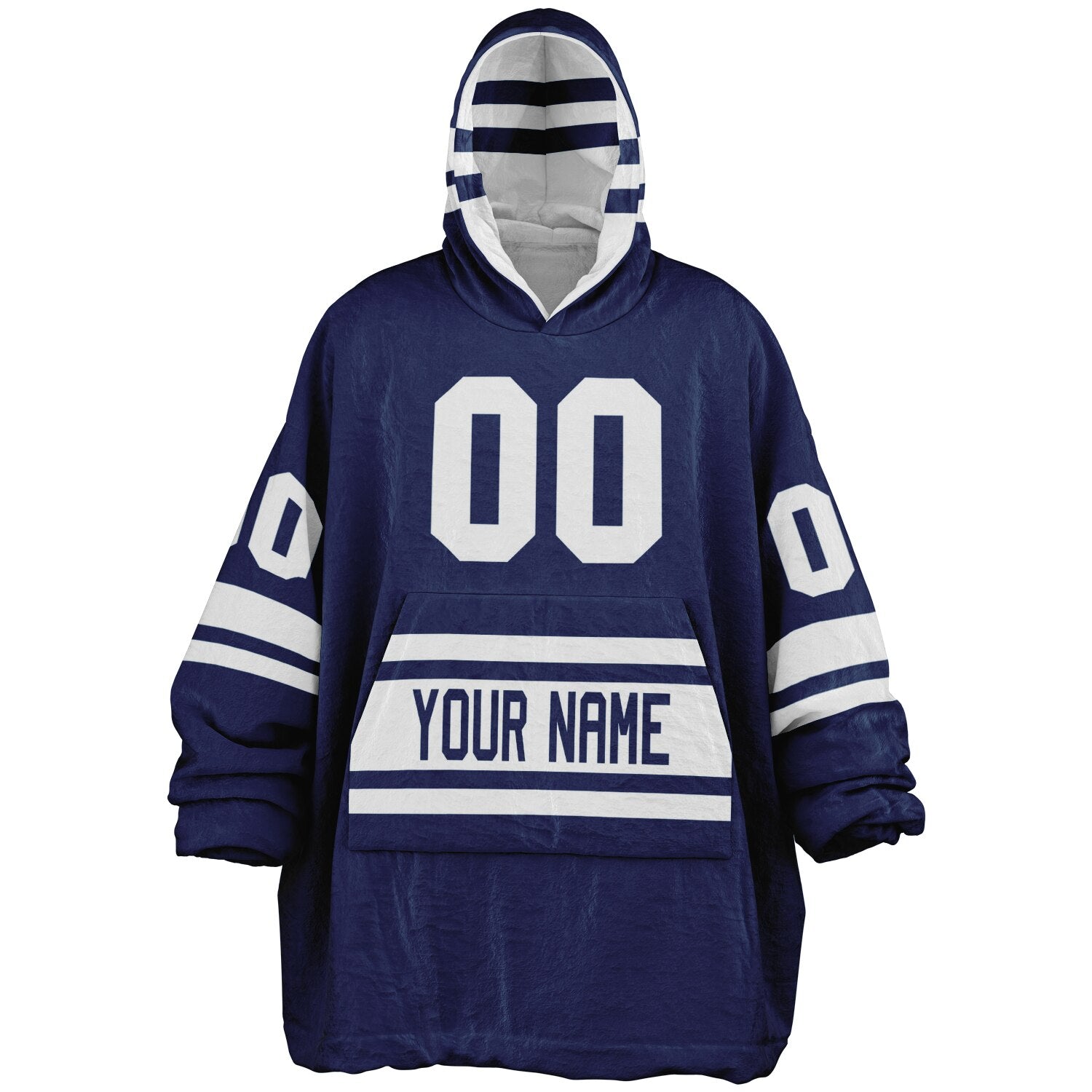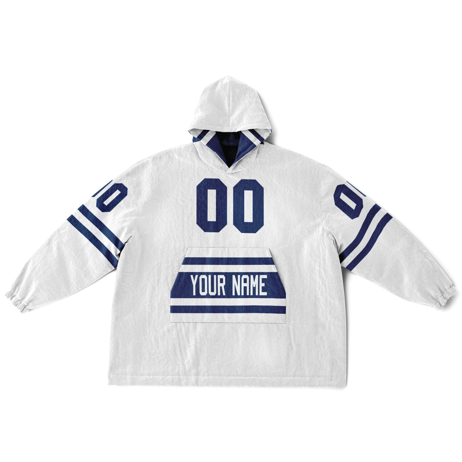 Show up for your team — and your comfort — with the Superfan Reversible Snug Hoodie. Inspired by classic home-and-away jersey colors, this double-sided design gives you two bold looks in one ultra-thick, blanket-weight hoodie. One side brings that home-field energy with eye-catching blue and white hues; flip it inside out for a fresh, lighter colorway that feels just as spirited. Add your personalized name and number to make it your own, and you’ve got the ultimate fan essential for game days, snow days, and every lazy day in between.