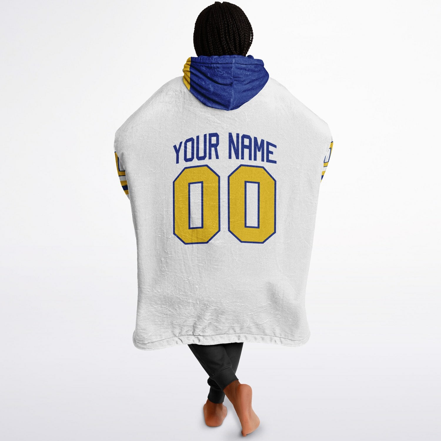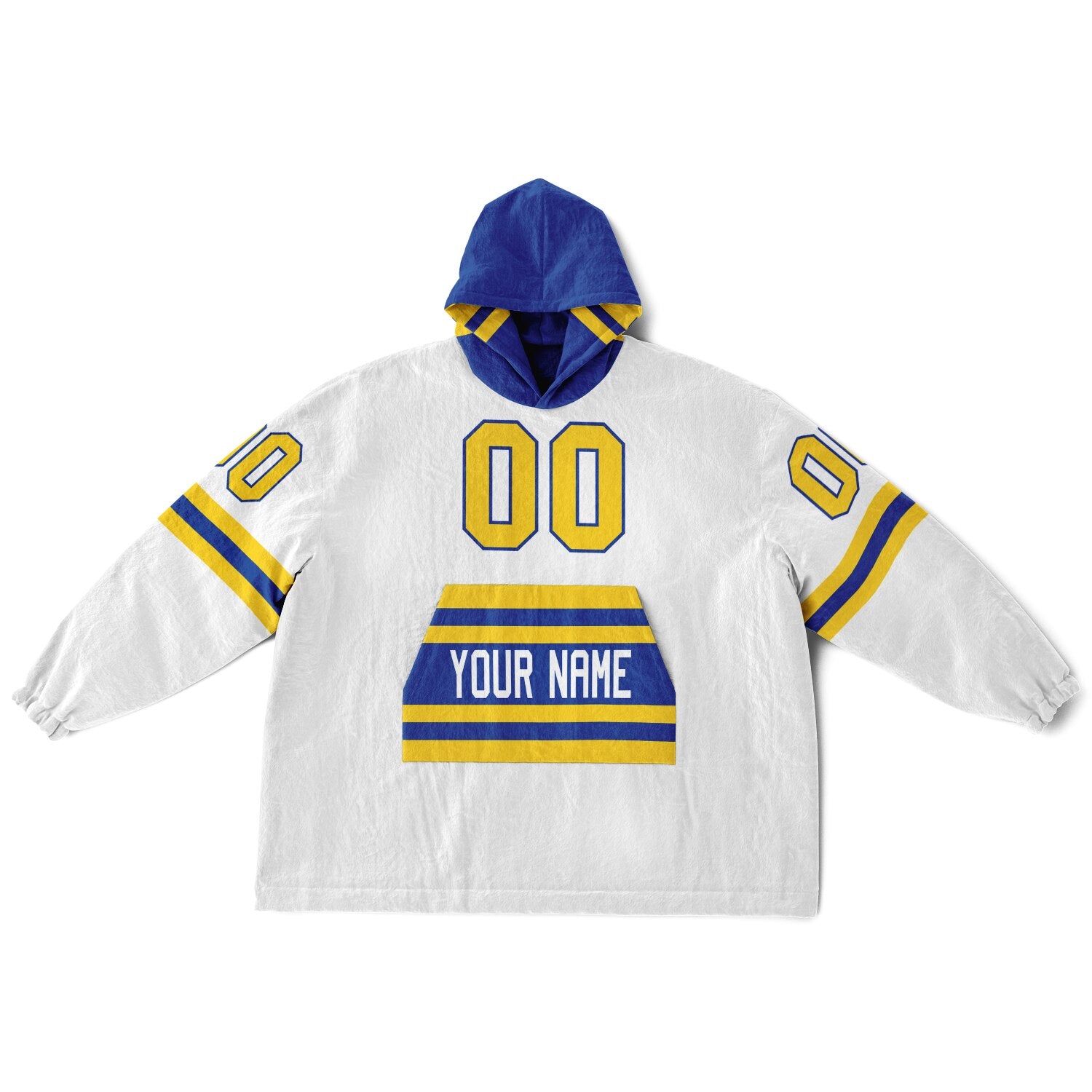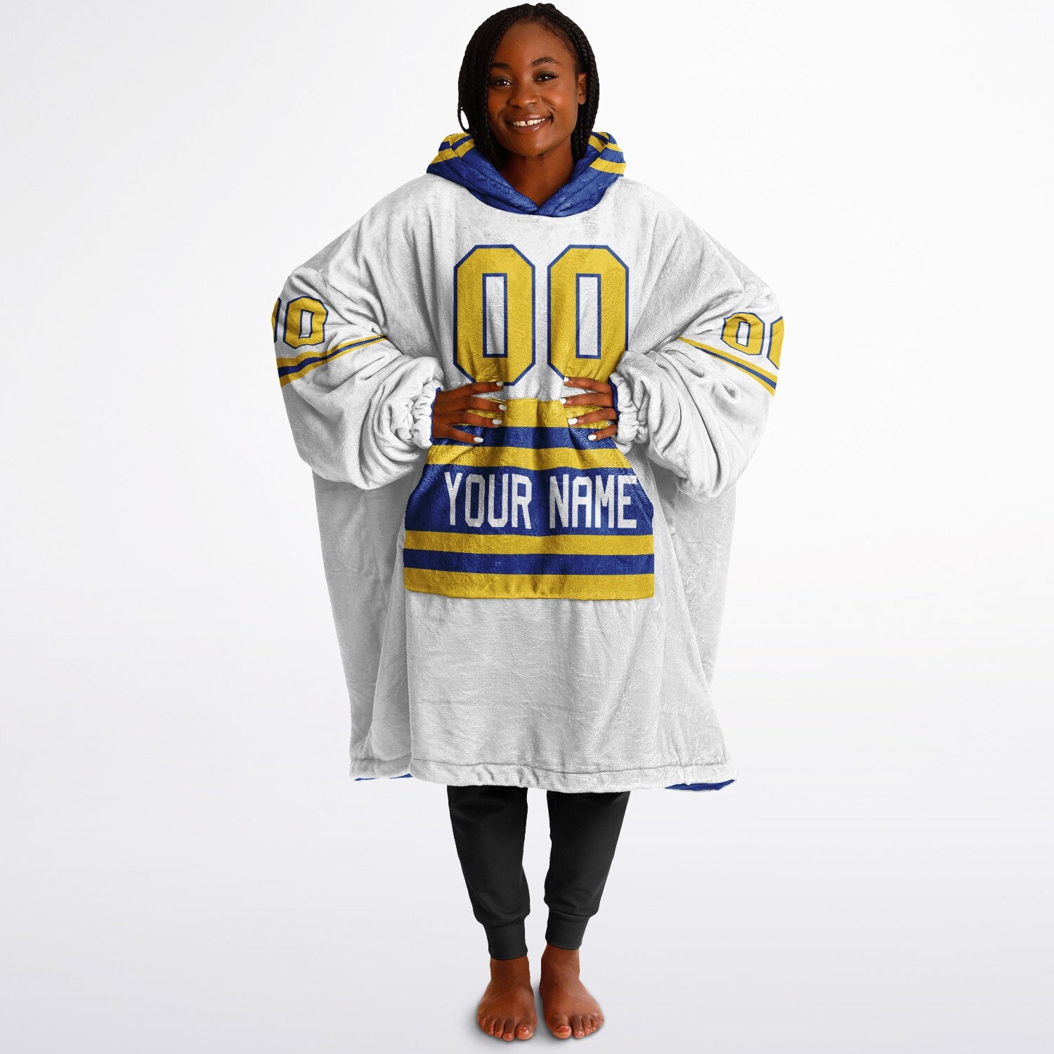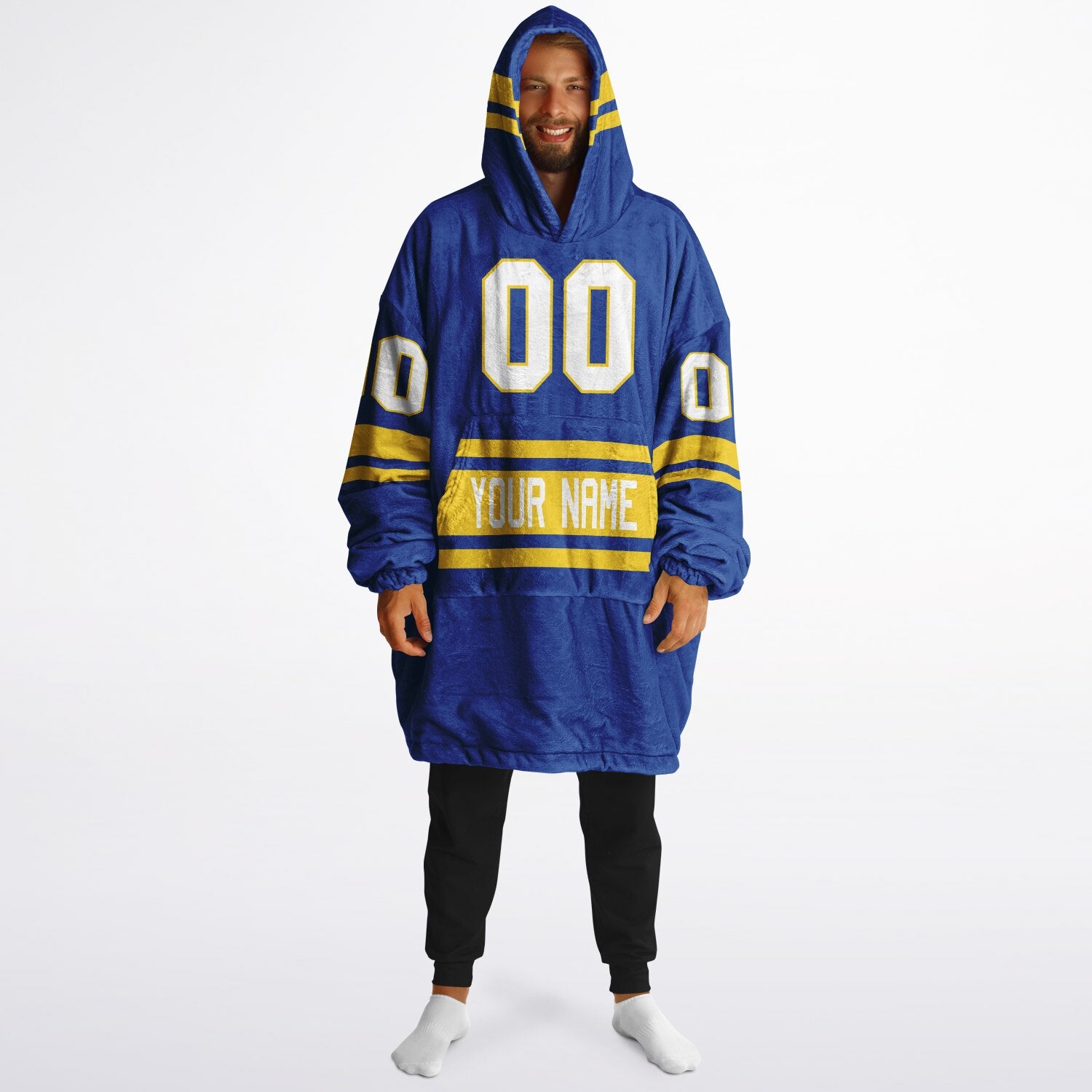 Show up for your team — and your comfort — with the Superfan Reversible Snug Hoodie. Inspired by classic home-and-away jersey colors, this double-sided design gives you two bold looks in one ultra-thick, blanket-weight hoodie. One side brings that home-field energy with eye-catching blue and yellow hues; flip it inside out for a fresh, lighter colorway that feels just as spirited. Add your personalized name and number to make it your own, and you’ve got the ultimate fan essential for game days, snow days, and every lazy day in between.