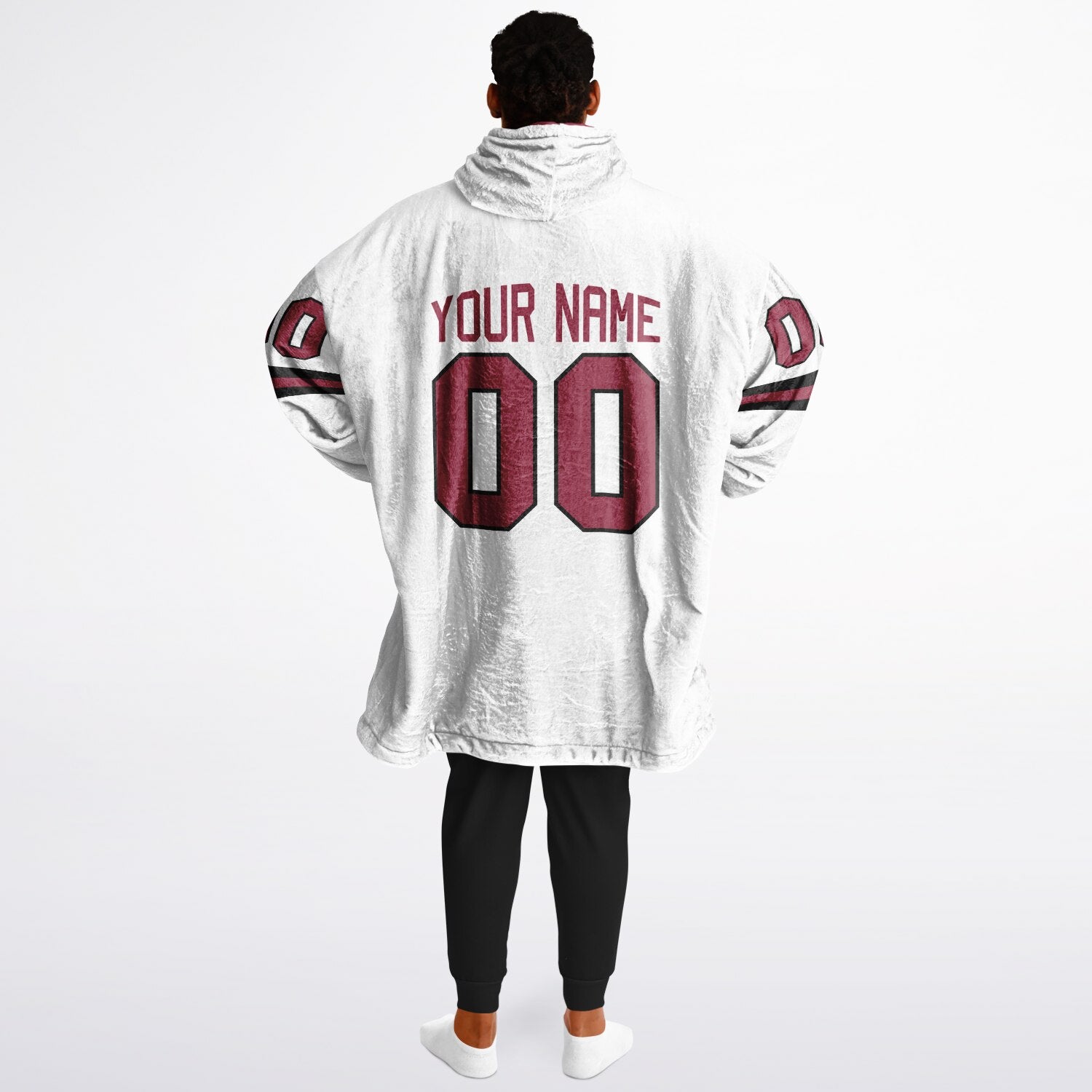 It’s a premium, wearable blanket hoodie — thick, cozy, and designed in team-inspired colors so you can stay warm and stylish all game long.
