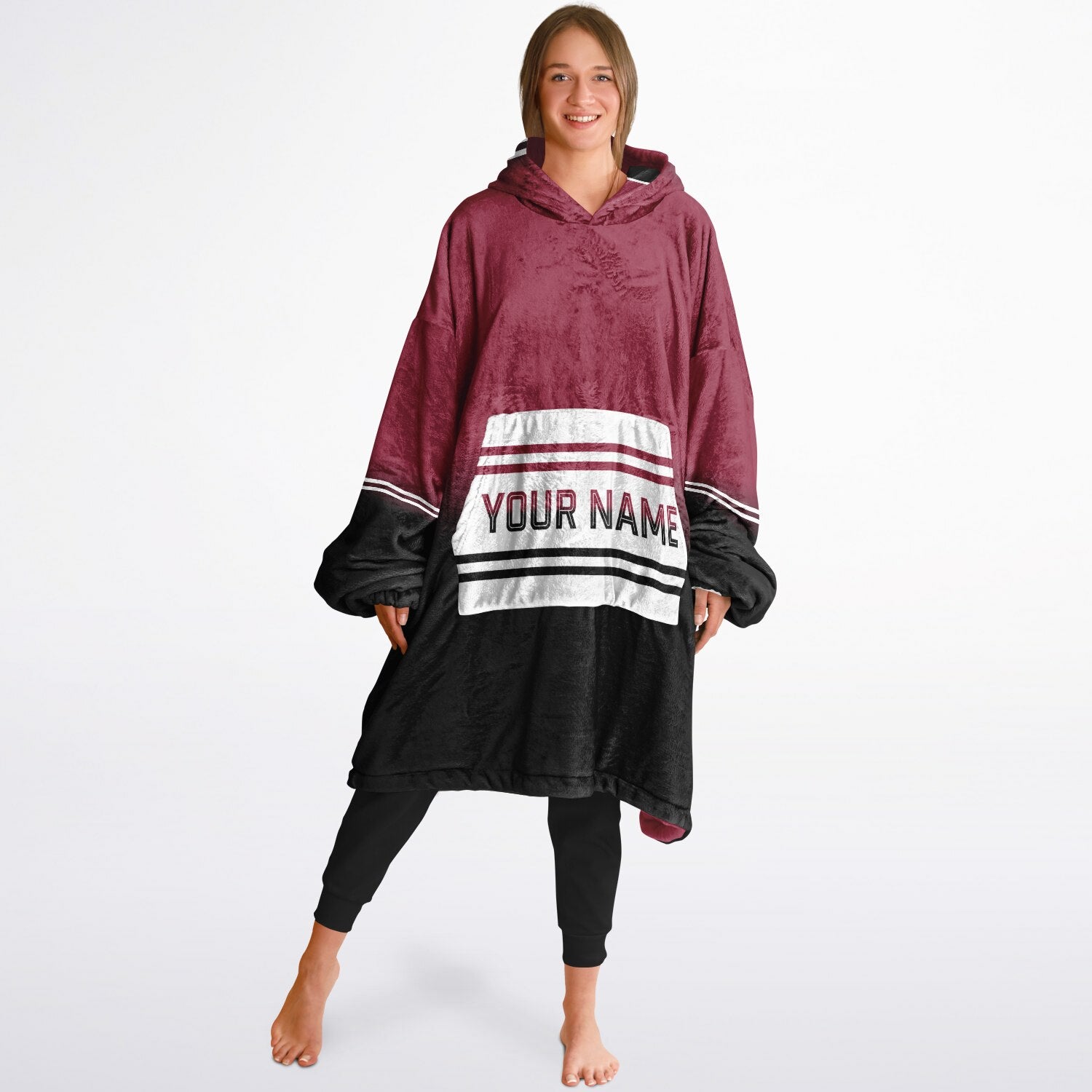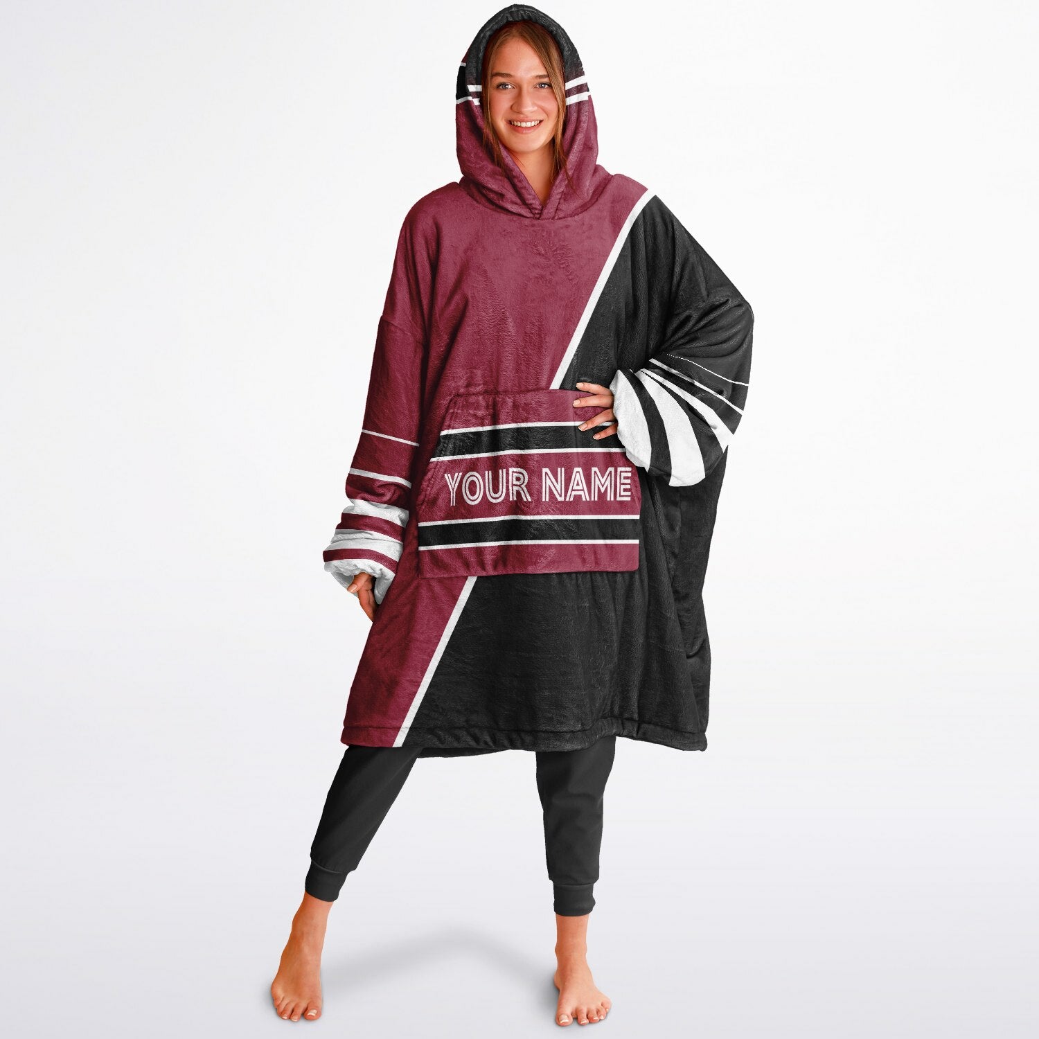 It’s a premium, wearable blanket hoodie — thick, cozy, and designed in team-inspired colors so you can stay warm and stylish all game long.