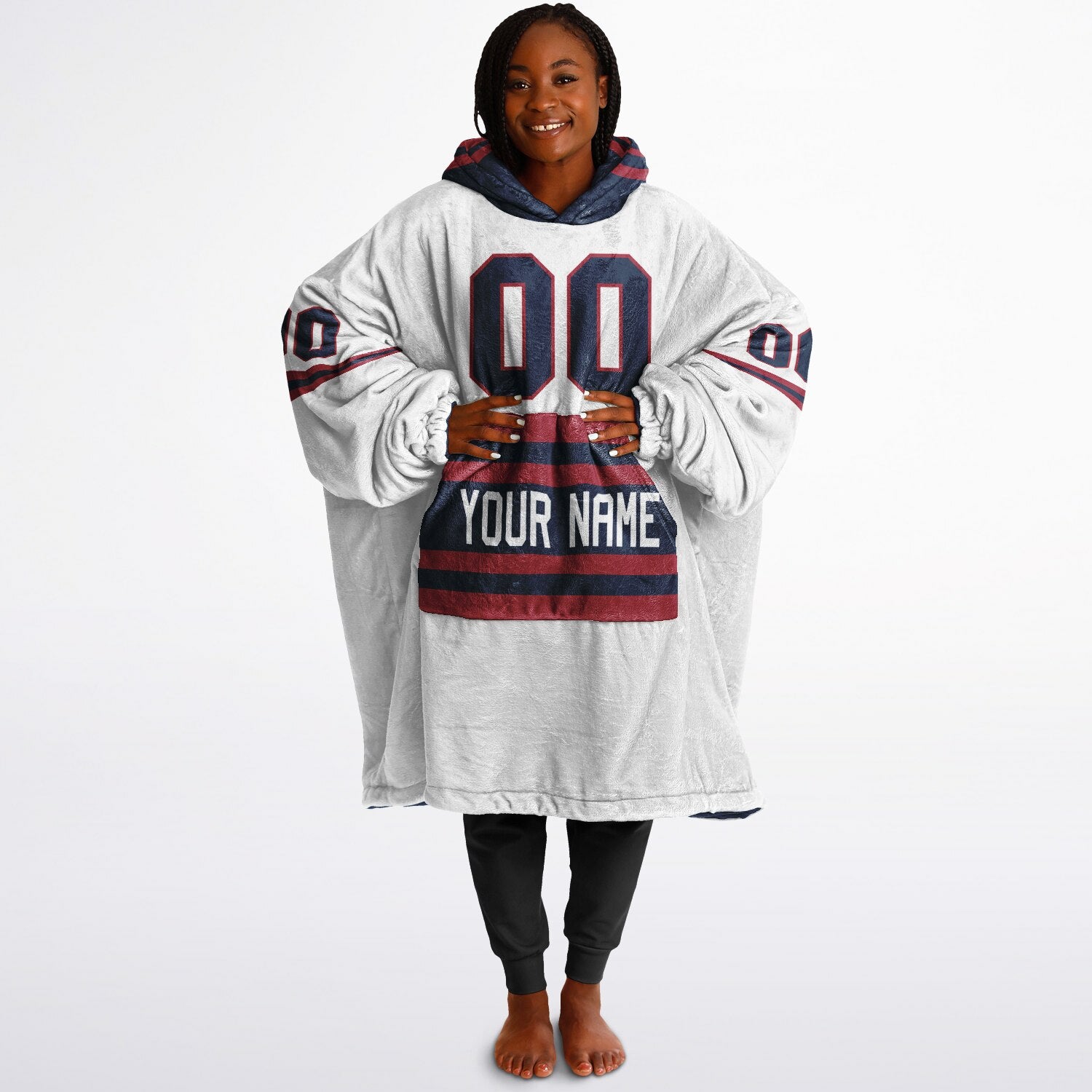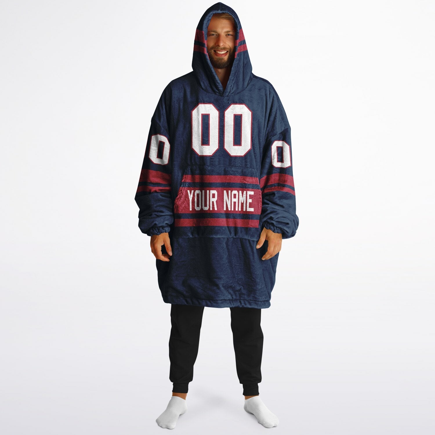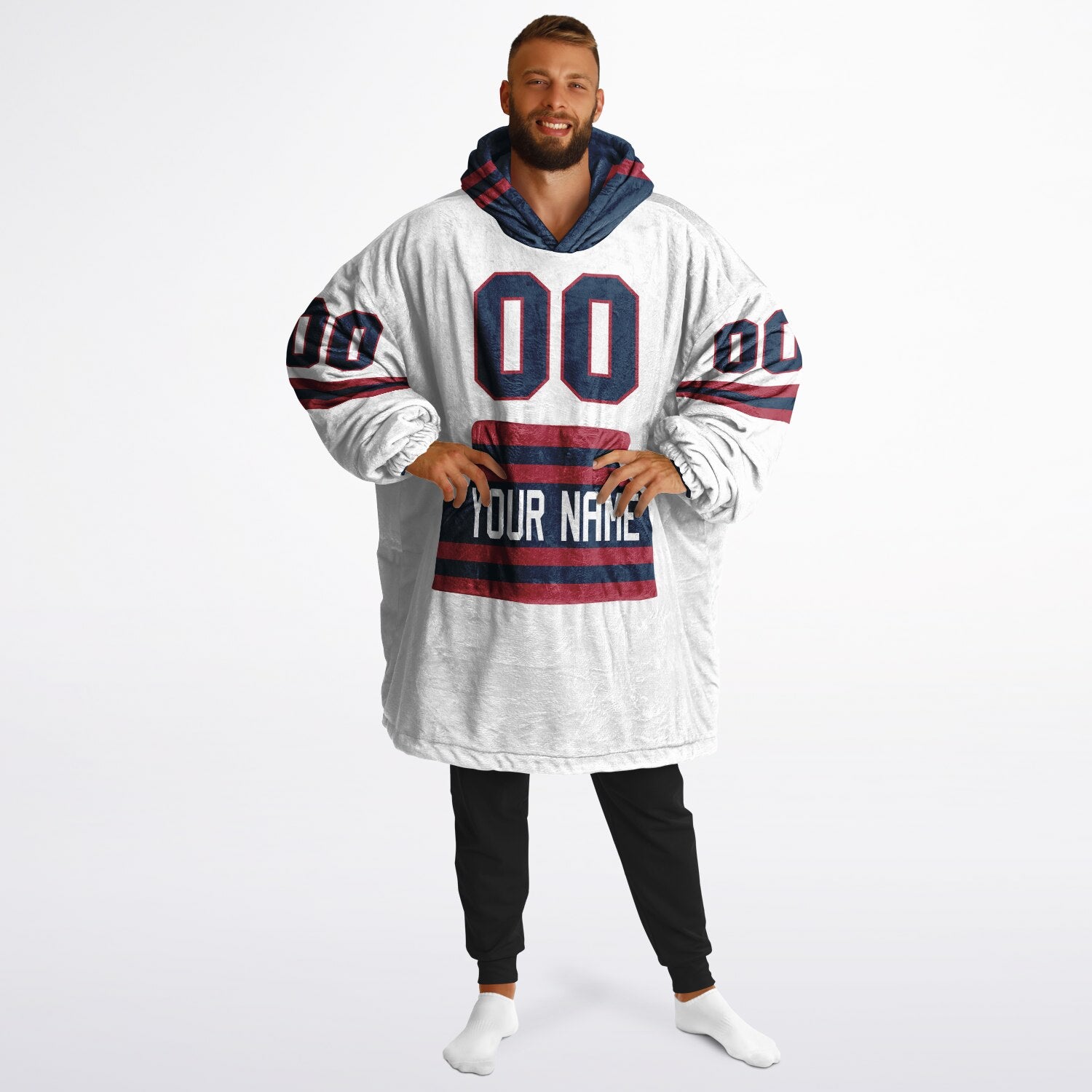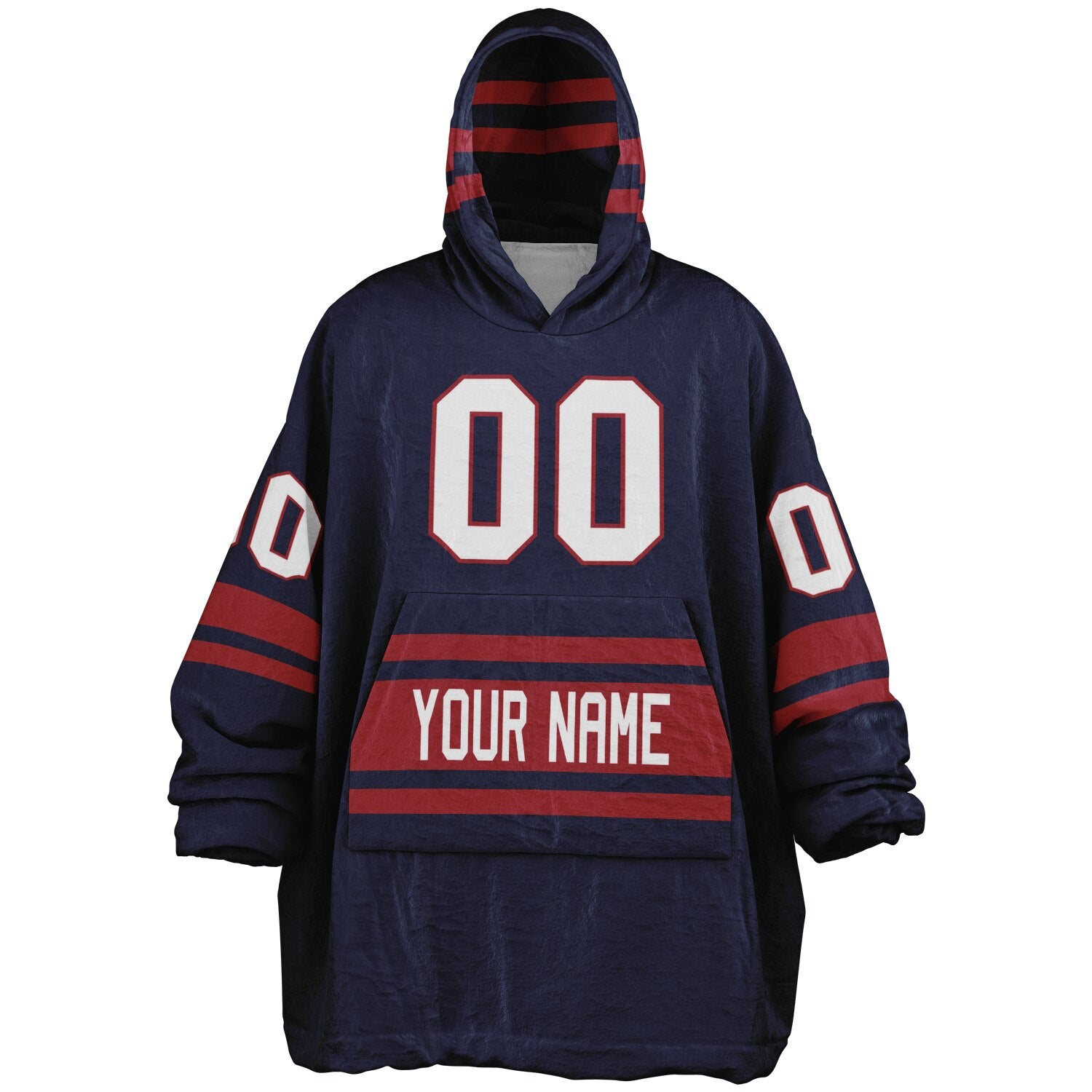 Show up for your team — and your comfort — with the Superfan Reversible Snug Hoodie. Inspired by classic home-and-away jersey colors, this double-sided design gives you two bold looks in one ultra-thick, blanket-weight hoodie. One side brings that home-field energy with eye-catching nautical blue and red hues; flip it inside out for a fresh, lighter colorway that feels just as spirited. Add your personalized name and number to make it your own, and you’ve got the ultimate fan essential for game days, snow days, and every lazy day in between.