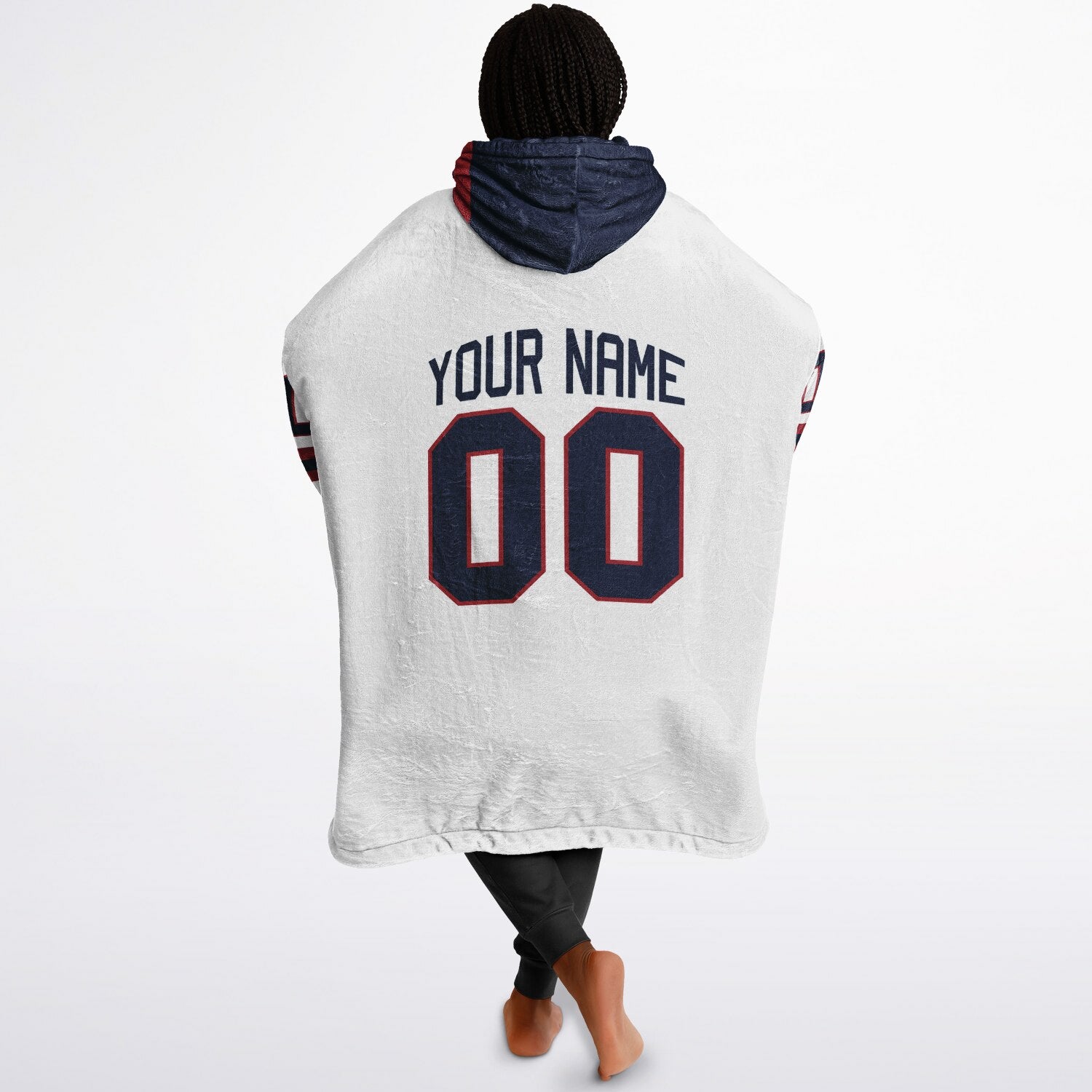 It’s a premium, wearable blanket hoodie — thick, cozy, and designed in team-inspired colors so you can stay warm and stylish all game long.