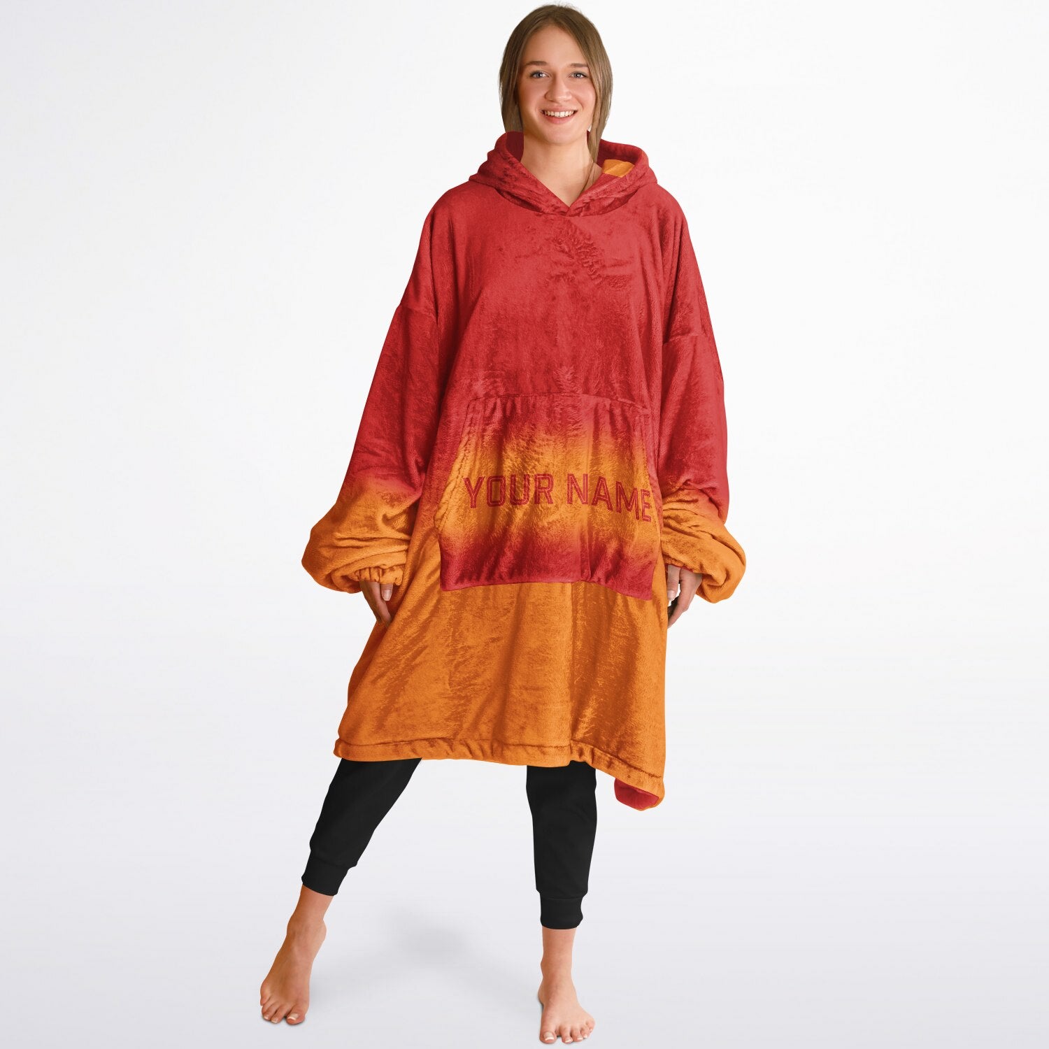 For the fans who live in their colors year-round — the Everyday Reversible Snug Hoodie delivers cozy versatility in a thicker, premium build. With team colors red and orange in bold color blocking on one side and a smooth gradient fade on the other, this double-layer design gives you two effortless looks in one ultra-soft, blanket-weight hoodie. It’s inspired by fan pride but made for everyday comfort — the kind you’ll reach for whether it’s game night, movie night, or just another “don’t-leave-the-couch” kind of day. Personalize it with custom text to make it uniquely yours.